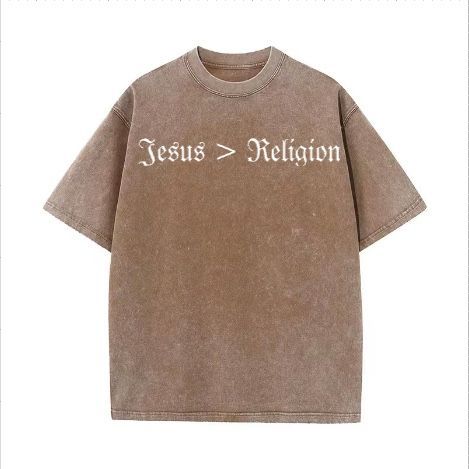 This shirt was created to emphasize the difference between a personal relationship with Jesus and man-made religious systems or empty rituals.