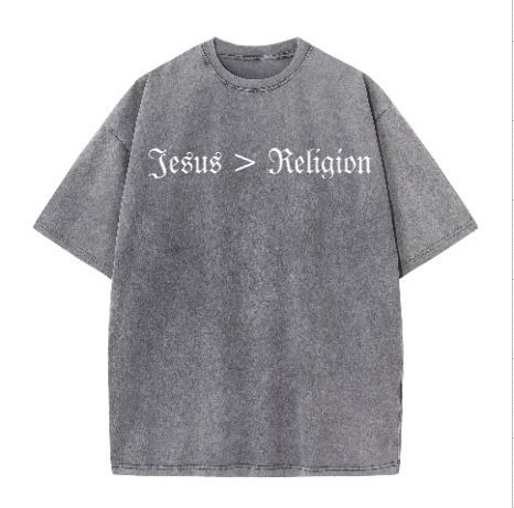 This shirt was created to emphasize the difference between a personal relationship with Jesus and man-made religious systems or empty rituals.